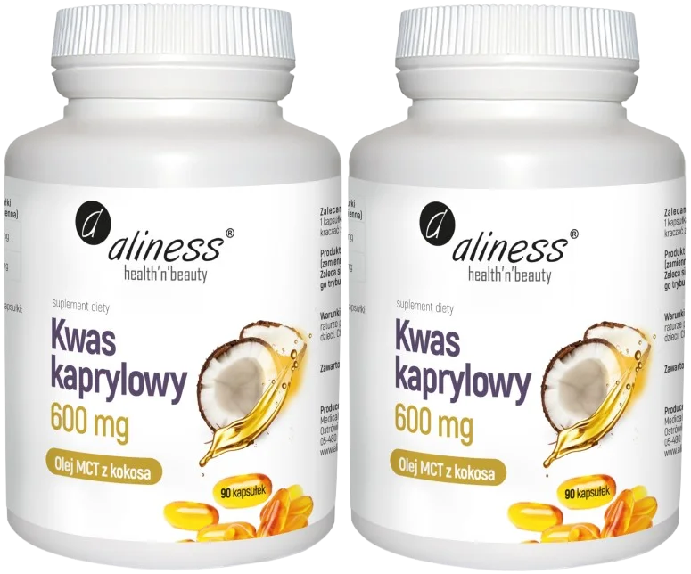 2 x Kwas kaprylowy (60% C8) 600 mg x 90 caps, Aliness