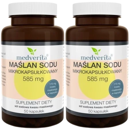 Maślan sodu zawiera kwas masłowy, który jest krótkołańcuchowym kwasem tłuszczowym. Kwas masłowy stanowi główny materiał energetyczny dla komórek nabłonka jelitowego.