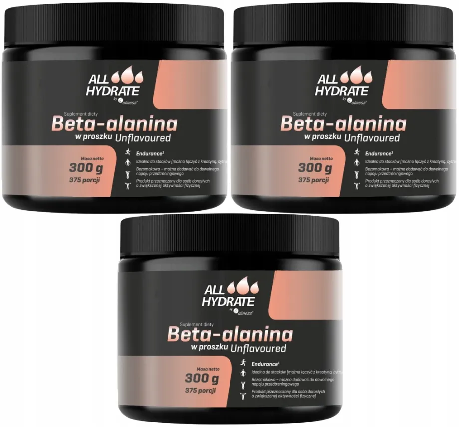 Aliness ALLHydrate Beta-Alanina 3x300g – Na Wytrzymałość i Opóźnienie Zmęczenia, 1125 Porcji, Zestaw