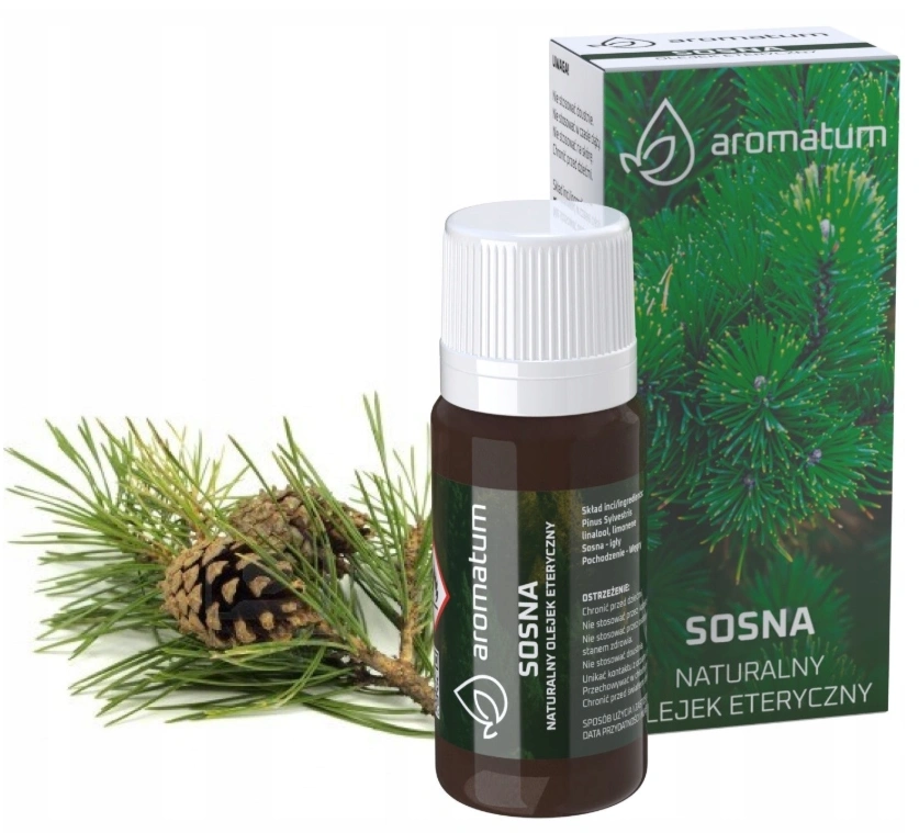 Naturalny olejek otrzymywany jest z igieł sosny zwyczajnej. Posiada właściwości antyseptyczne w infekcjach dróg oddechowych i zatok. Działa pobudzająco i odświeżająco na zmęczony umysł. Usuwa objawy zmęczenia, wyczerpania nerwowego i nerwobóle. Dzięki właściwościom rozgrzewającym może łagodzić objawy reumatyzmu i artretyzmu. Działa wykrztuśnie, bakteriobójczo i dezynfekująco, dlatego często wykorzystywany jest do inhalacji. Zwiększa odporność organizmu, rozszerza drogi oddechowe i ułatwia oddychanie.