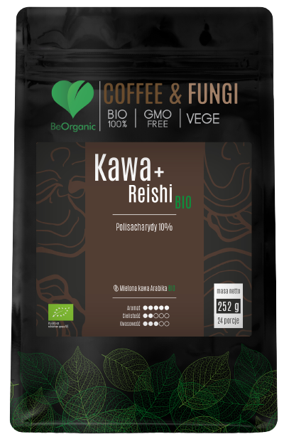 BeOrganic Coffee & Fungi to unikalne połączenia mielonej kawy Arabica z ekstraktami grzybów, standaryzowanymi na zawartość charakterystycznych dla nich substancji aktywnych.