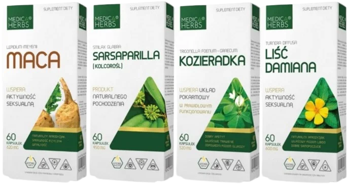 Dla mężczyzn - Sarsaparilla + Maca + Kozieradka + Liść Damiana, Medica Herbs