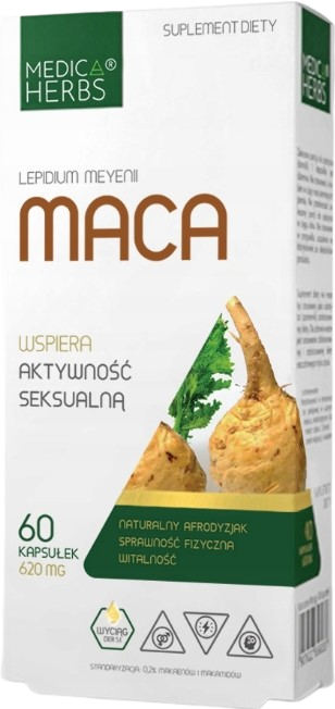 Maca (Lepidium meyenii) jest stosowana jako naturalny afrodyzjak. Pomaga utrzymać właściwą aktywność seksualną oraz prawidłową płodność zarówno mężczyzn jak i kobiet. Wspiera odpowiednią sprawność fizyczną i umysłową, przyczyniając się do zachowania naturalnej witalności.