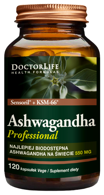 Doctor Life Ashwagandha KSM-66+ Sensoril 550mg 120 kapsułek - Stres Napięcie Nerwowe Sen Energia Witalność