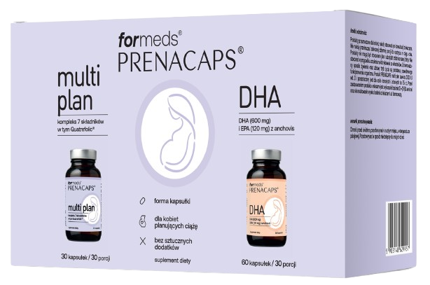 ForMeds PRENACAPS multiPLAN 30 kapsułek + DHA 60 kapsułek - Ciąża Rozwój Mózgu Dziecka Serce Krążenie