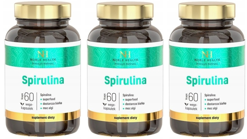 Noble Health Spirulina 3x60 Kapsułek – Alga na Witalność i Ochronę Antyoksydacyjną, Zestaw