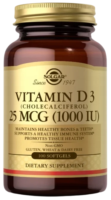 Preparat zawiera 25 mcg naturalnej witaminy D3, w postaci cholekalcyferolu w każdej kapsułce. Taka dawka ma udokumentowane fizjologicznie oddziaływanie na ludzki organizm. Witamina pozyskiwana jest z olejów z wątroby wybranych gatunków dalekomorskich ryb zimnowodnych. Wyróżniająca firmę Solgar staranność produkcji i sposób pakowania, gwarantują witaminie zachowanie pełnej potencji i aktywności w trakcie całego okresu stosowania.