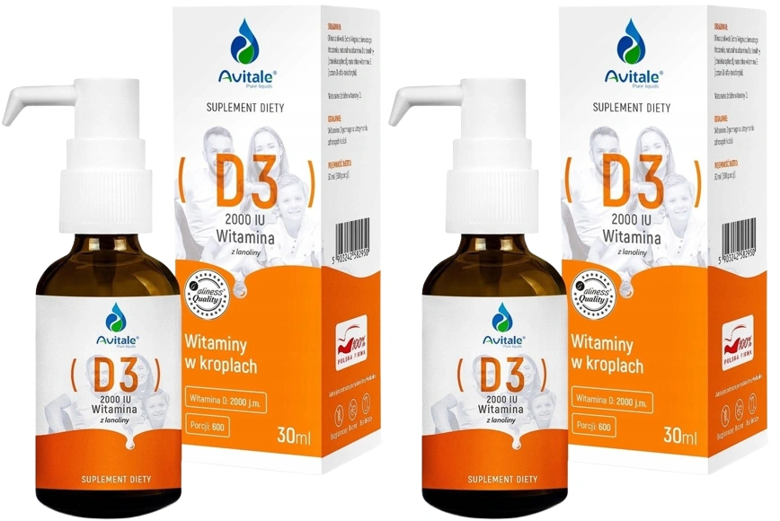 Zestaw 2x Krople Avitale, Witamina D3 2000 IU Z LANOLINY 30 ml, Aliness