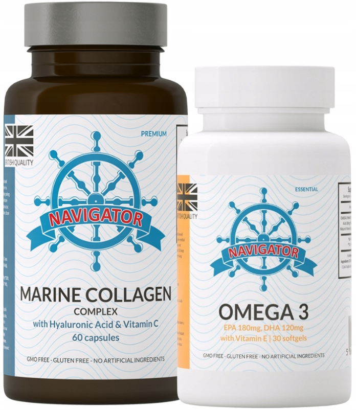 Zestaw - Kolagen Morski 500 mg, 60 kapsułek, Navigator + OMEGA 3 30KAPS. GRATIS